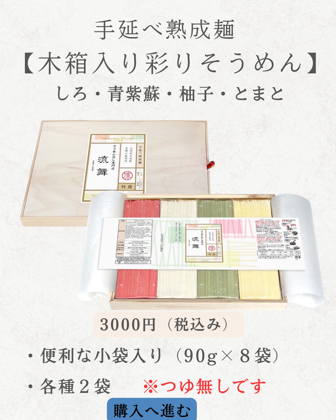 手延べ熟成麺でもちもち食感と極上のコシを楽しめます。